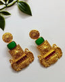 Ekani Samaya 1 Gram Gold Polish Brass Green Stone Earrings