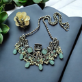 Ekani Kritika Doli Baraat Silver Replica Monalisa Stone Pearl Beads Necklace With Stud Earrings