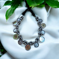 Timeless classics vintage afghani with colorful glass and ghungroos clustered thread makes a stunning piece.