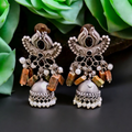Irresistible silver oxidised necklace set with detailed work that will make you not to wait for any occasion to wear it. It comprises of pearl beads chain extention with work of pachi kundan and mirror comprised big statement Pendent along with a pair ofmatching dangler earrings. This can be toned with all kind of traditional and indo western dresses.