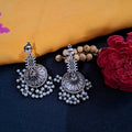 Jhumka earrings made from brass and inspired from classic antique jewellery pieces. Oxidised silver plating adds to the charm of this faux pearls embellished pair, which will look splendid with ethnic outfits.