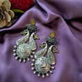 A stunning pair of gold earrings that feature a striking combination of filigree jaali embossed work with intricate detailing. This earrings is crafted in pure brass, featuring delicate pastel designs. These statement antique polish earrings are sure to make all heads turn. Pair this up with your wedding lahenga or even your shiny tussar or Kanjeevaram silk saree, these earrings are a keeper.